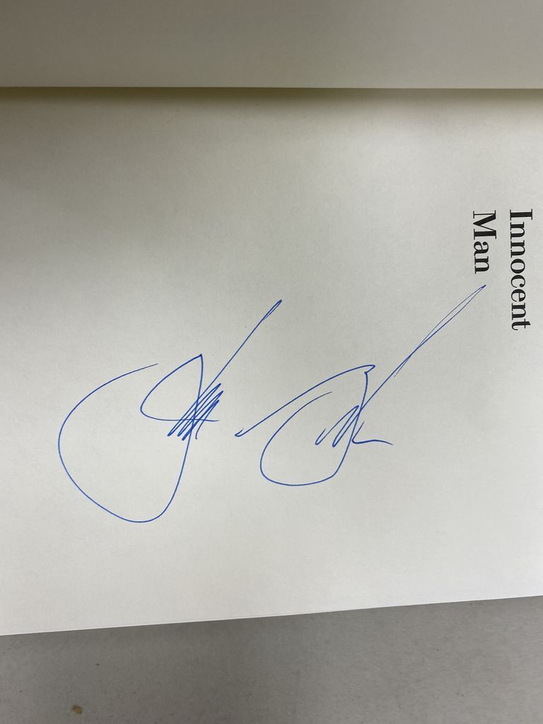 John Grisham "The Innocent Man" 2nd Edition, signed, hardcover, dust jacket, inscribed front cover. Location Room by Kitchen John Grisham "The Innocent Man" 2nd Edition, signed, hardcover, dust jacket, inscribed front cover. Location Room by Kitchen