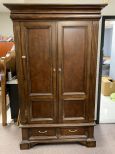 Large Entertainment Armoire, one piece, cherry, double door, needs cleaning, 84"h., 45"w., 21"d. Large Entertainment Armoire, one piece, cherry, double door, needs cleaning, 84"h., 45"w., 21"d.