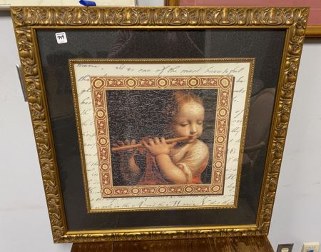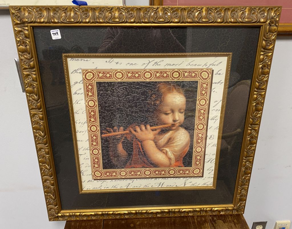 Large Decorative Print of Girl Playing Flute, modern, matted, framed, 30"h., 30"w., Location Left Hall Large Decorative Print of Girl Playing Flute, modern, matted, framed, 30"h., 30"w., Location Left Hall