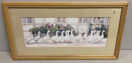 Darton 1983 Print of Geese, matted, framed, 16" x 30", Location Back Left Office Darton 1983 Print of Geese, matted, framed, 16" x 30", Location Back Left Office