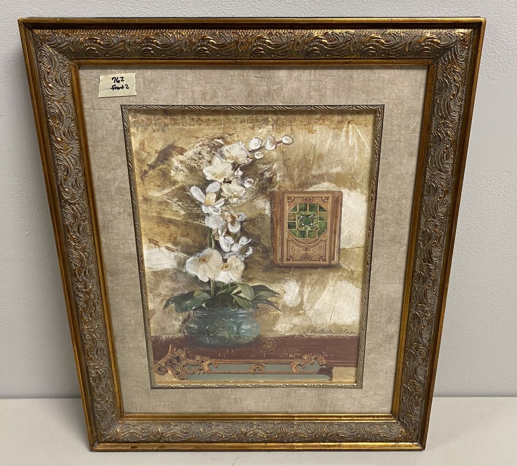 Signed Olson Floral Print, frame is 24"h., 19"w, Location Back Left Office Signed Olson Floral Print, frame is 24"h., 19"w, Location Back Left Office