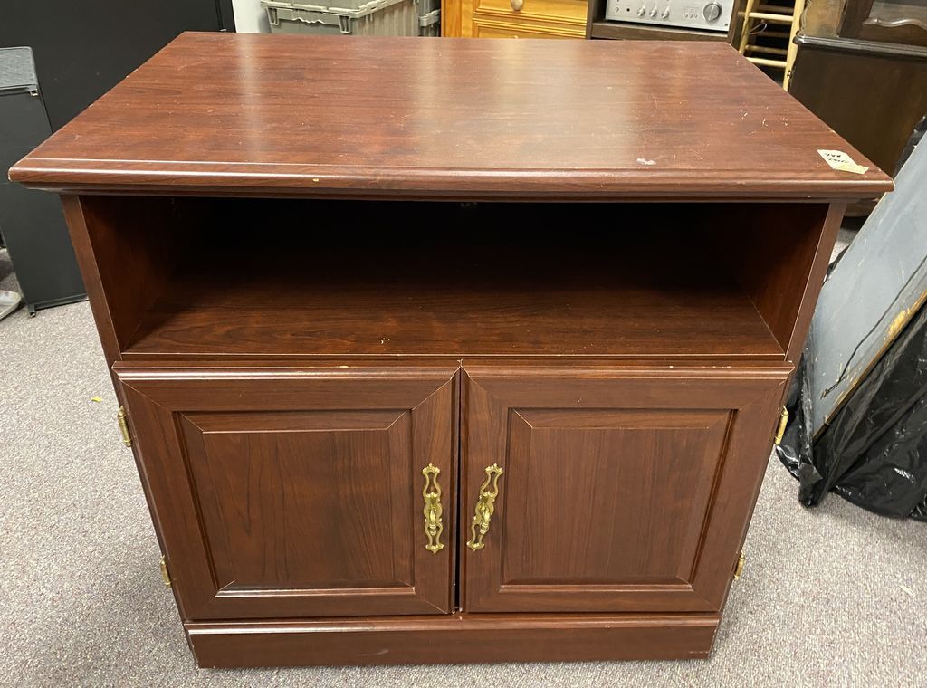 Cherry Pressed Wood TV Stand, on wheels, 28"h., 30"w. Cherry Pressed Wood TV Stand, on wheels, 28"h., 30"w.