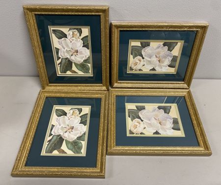 Four Magnolia Prints, matted, framed, 12" x 10", Location Back Left Office Four Magnolia Prints, matted, framed, 12" x 10", Location Back Left Office
