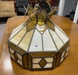 Stained and leaded glass light fixture, few have cracks, 15"h. ,20"dia. Stained and leaded glass light fixture, few have cracks, 15"h. ,20"dia.