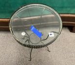 Small Round Glass Top Stand, 19"h., 12"dia. Location left Office Small Round Glass Top Stand, 19"h., 12"dia. Location left Office