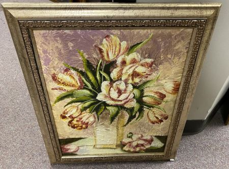 J Gill Still Life Painting, on canvas, frame is 24"h., 20"w. J Gill Still Life Painting, on canvas, frame is 24"h., 20"w.