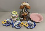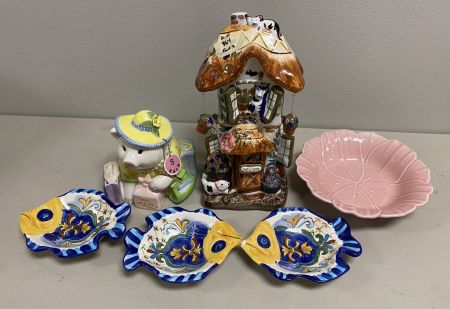 864 Porcelain Fish, Cat House, Pig, and Flower Bowl