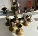 Collection of Brass Candle Holders, Location Back Right Office Collection of Brass Candle Holders, Location Back Right Office