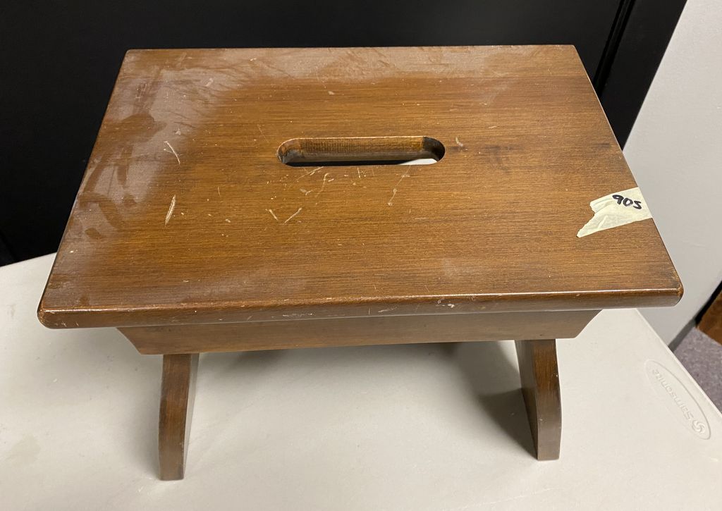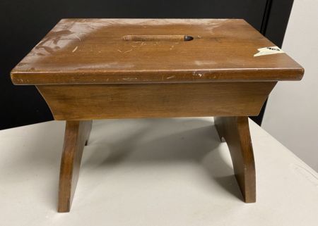 Small Wood Stool, 10"h., 13"w. Location Back Bookcases Small Wood Stool, 10"h., 13"w. Location Back Bookcases