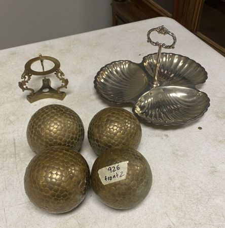 926 Assorted 4 Decorative Balls, Silver Plate Shell Serving Tray, Elegant Brass Stand With Three Dragons