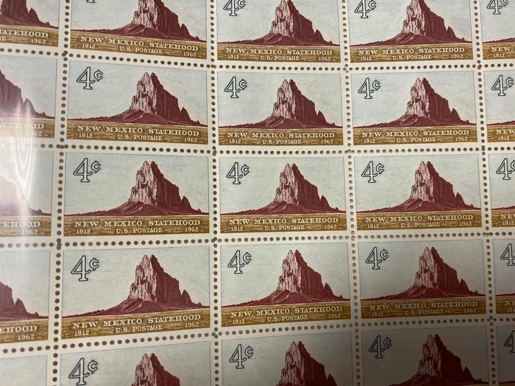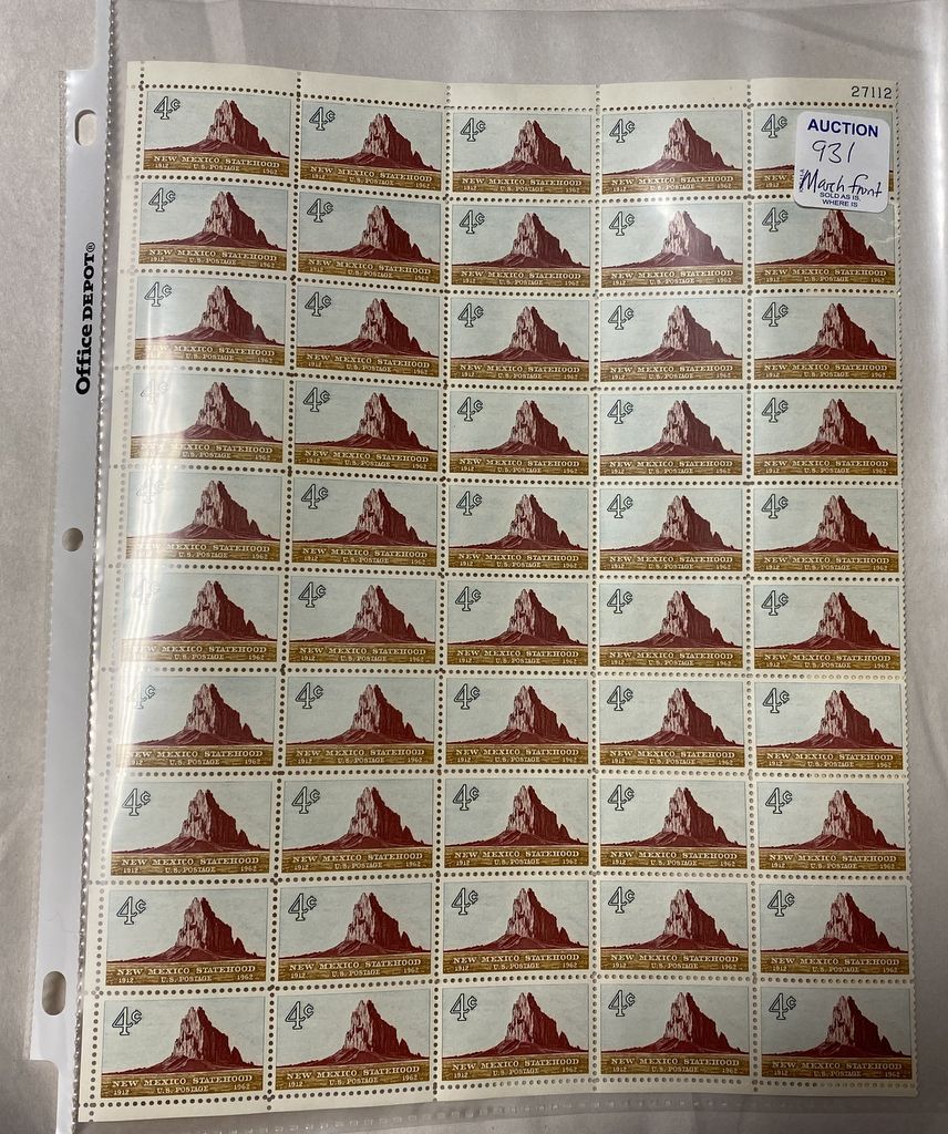 Sheet of New Mexico Statehood 50 years Stamps, 1912-1962, Location Case by Office Sheet of New Mexico Statehood 50 years Stamps, 1912-1962, Location Case by Office