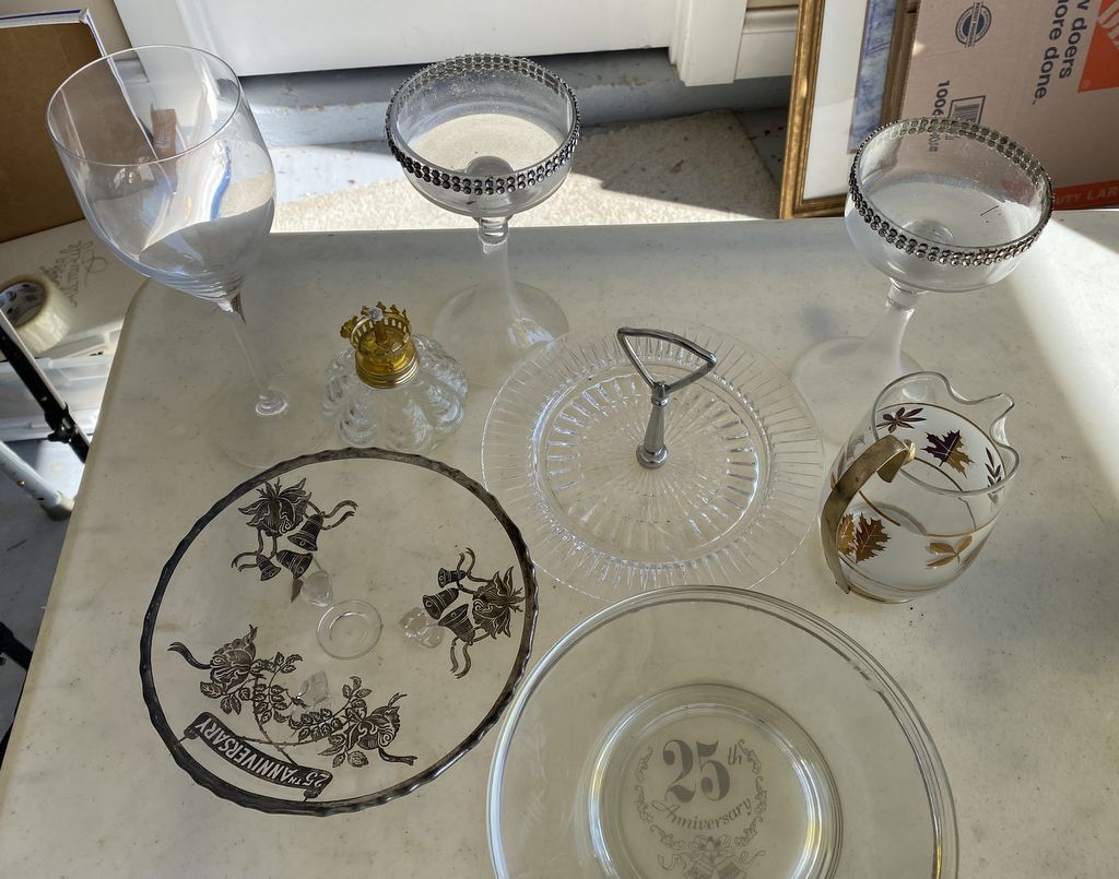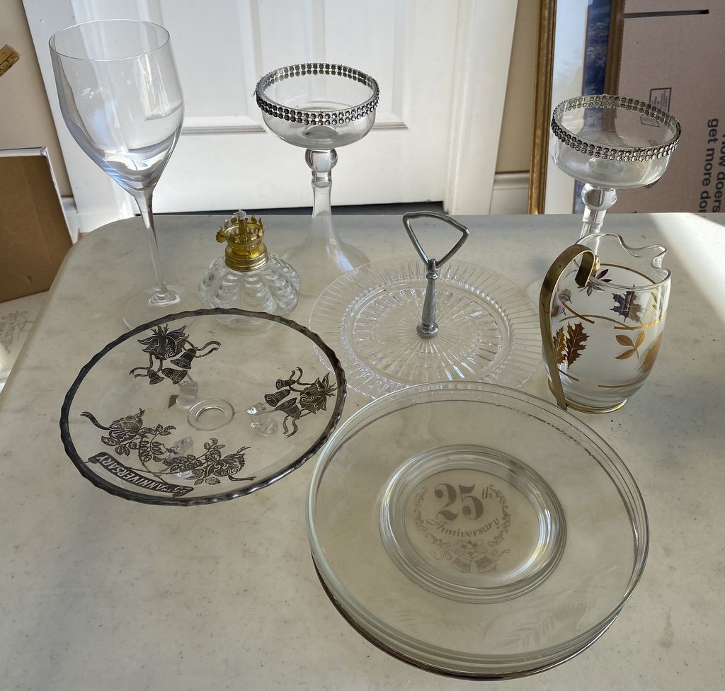 Glass stemware and plates, Location Back Right Office Glass stemware and plates, Location Back Right Office