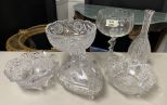 949 Group of Pressed Crystal Compotes, Candy Dish, Decanter, and Bowls