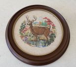 Round Needle Point Deer Artwork, circle framed, 13"dia, Location Back Office Round Needle Point Deer Artwork, circle framed, 13"dia, Location Back Office