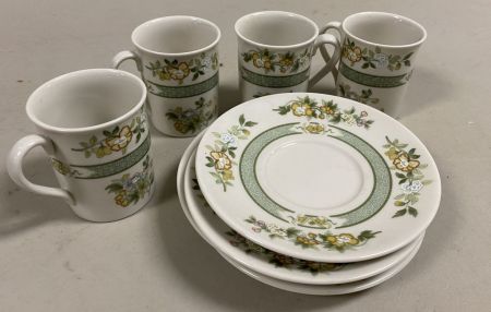 Royal Doulton "Tonkin" Porcelain Cups and Saucers, 4 cups and 4 saucers. Location Back Right Office Royal Doulton "Tonkin" Porcelain Cups and Saucers, 4 cups and 4 saucers. Location Back Right Office