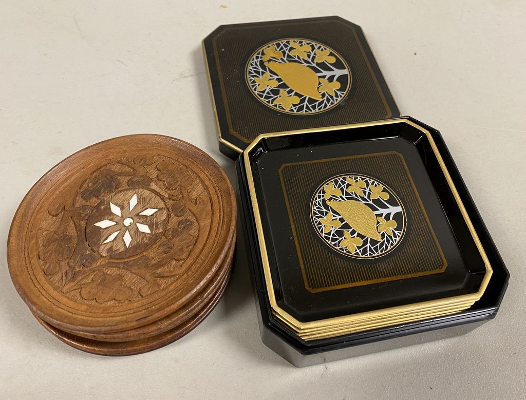 Group of Cup Coasters, woods and bird coasters in case. Location Back Right Office Group of Cup Coasters, woods and bird coasters in case. Location Back Right Office