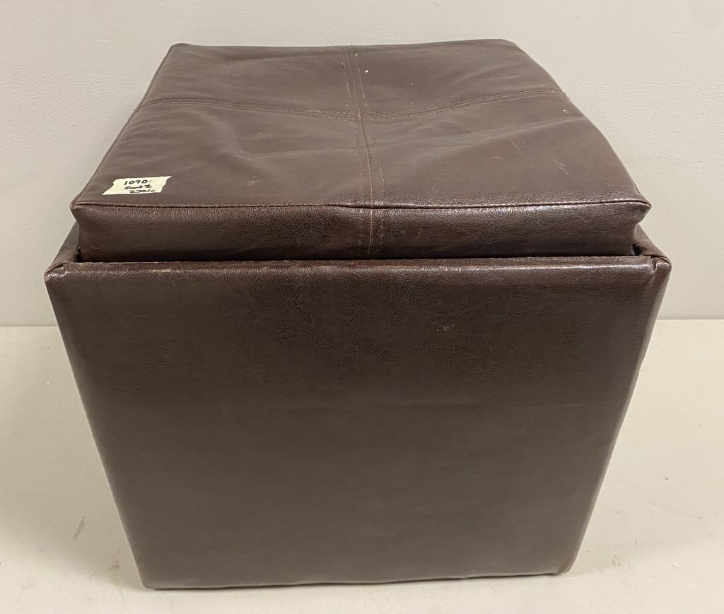 Brown Vinyl Storage Ottoman 18"h., 18"w. Location Back Right Office Brown Vinyl Storage Ottoman 18"h., 18"w. Location Back Right Office