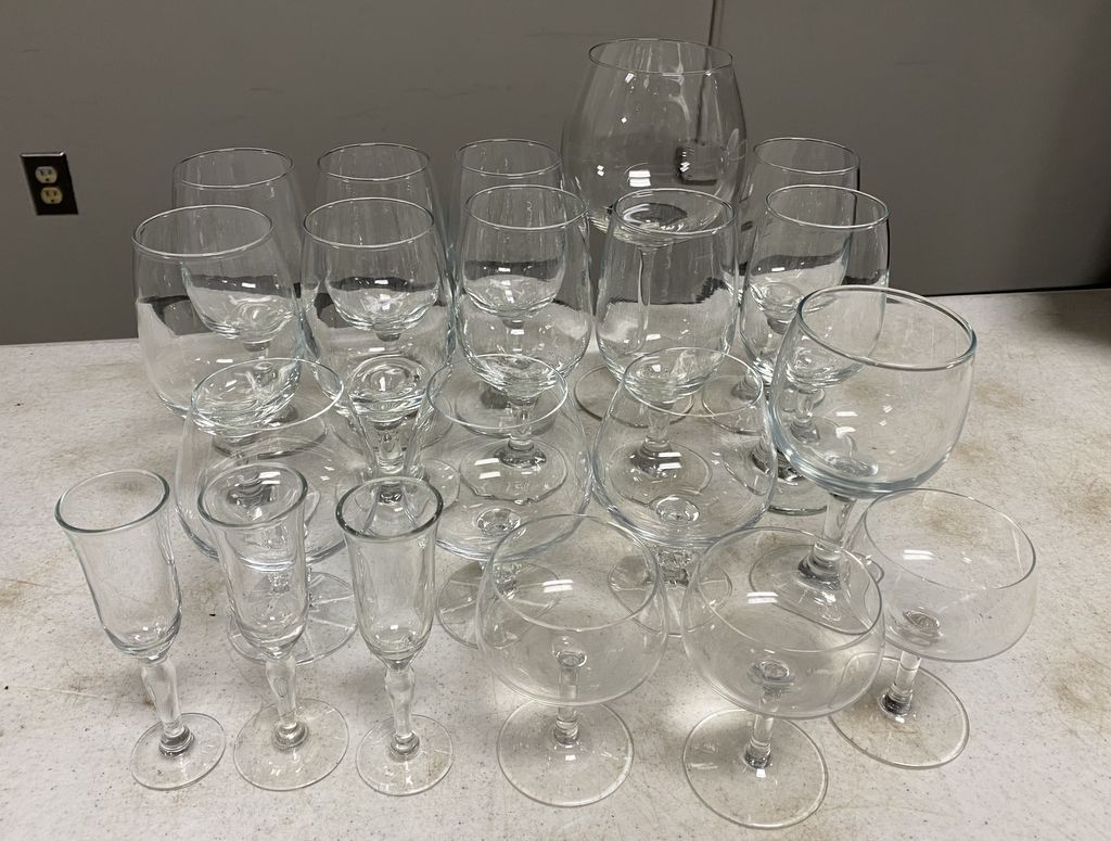 Group of Glassware stems, assorted styles, Location Back Right Office Group of Glassware stems, assorted styles, Location Back Right Office