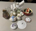 1123 Eggs, Porcelain Bird, Christmas Toy, Carnival Glass Vase, Basket
