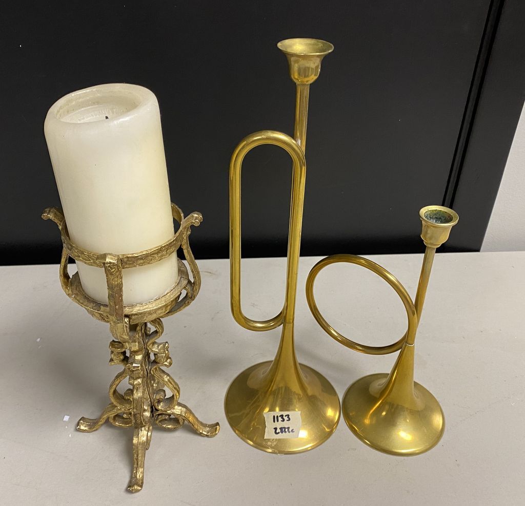 Brass Decorative Trumpets and Candle Holder, Location back office Brass Decorative Trumpets and Candle Holder, Location back office