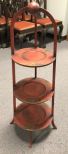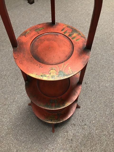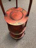 Oriental Red Painted Three Tier Display Stand , hand painted figures, 36"h. Oriental Red Painted Three Tier Display Stand , hand painted figures, 36"h.