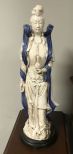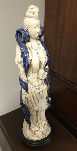 Modern Pottery Age Crackle Design Japanese Woman Statue, hand painted, wood base stand, 29"h. Modern Pottery Age Crackle Design Japanese Woman Statue, hand painted, wood base stand, 29"h.