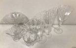 Group of Rose Point Glasses, sugar, creamer, compote, vases, and wine glasses, tallest is 8"h. Group of Rose Point Glasses, sugar, creamer, compote, vases, and wine glasses, tallest is 8"h.