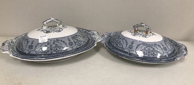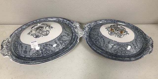 Copeland Porcelain Meat Dishes, pair of Copeland hand painted porcelain meat dishes with covers, 12"w. Copeland Porcelain Meat Dishes, pair of Copeland hand painted porcelain meat dishes with covers, 12"w.