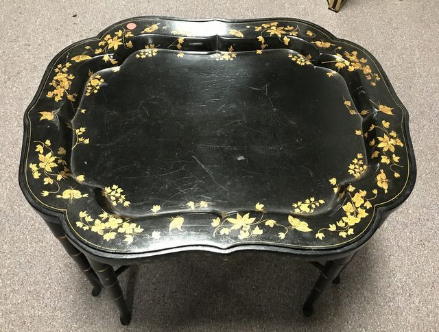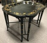 French style black and gold tray table, removable tray, eight legged, 17"h., 27"w., 21"d. French style black and gold tray table, removable tray, eight legged, 17"h., 27"w., 21"d.
