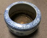 Hand Painted Blue & White Oriental Style Planter, porcelain, 12"h., 16"dia. Hand Painted Blue & White Oriental Style Planter, porcelain, 12"h., 16"dia.