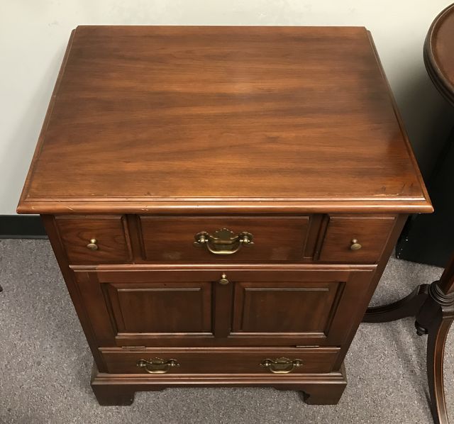 Virginia GalleriesChippendale Style Night Stand, solid black cherry, two drawers, single door, 29"h., 22"w., 17"d. Virginia GalleriesChippendale Style Night Stand, solid black cherry, two drawers, single door, 29"h., 22"w., 17"d.