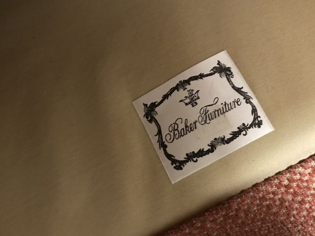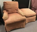 Baker Company Upholstered Arm and Ottoman , skirted, 32"h. Baker Company Upholstered Arm and Ottoman , skirted, 32"h.
