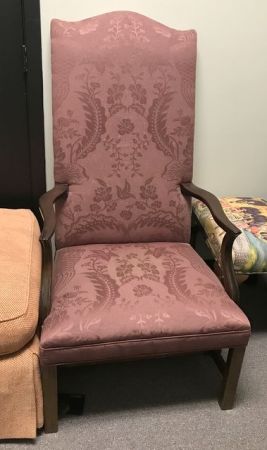 Pink Upholstered Hall Chair, arm chair, mahogany, cherry, Early American Style, 48"h. Pink Upholstered Hall Chair, arm chair, mahogany, cherry, Early American Style, 48"h.