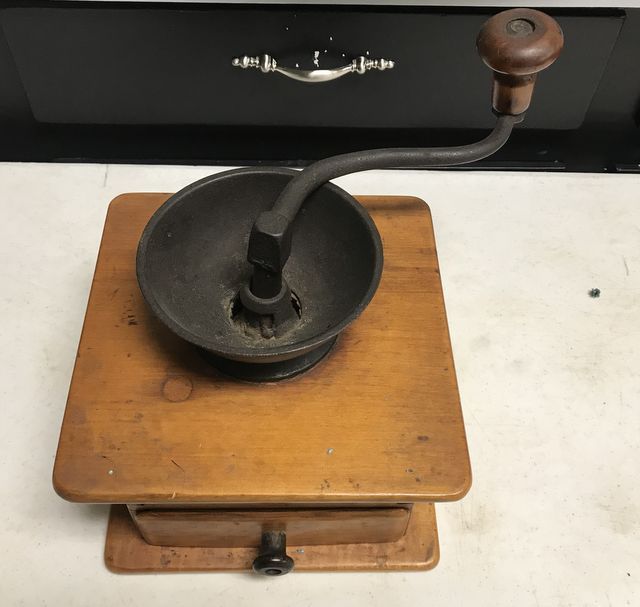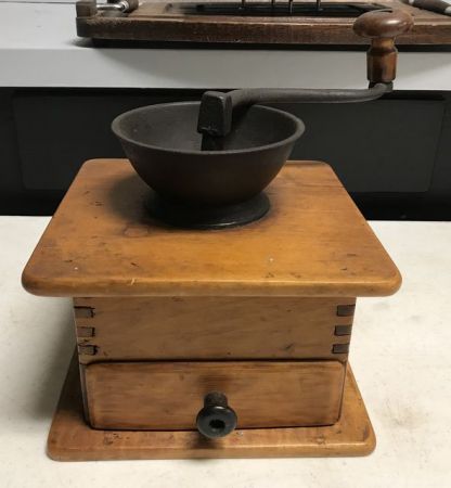 Vintage Coffee Grinder, dove tailed frame, single drawer, Vintage Coffee Grinder, dove tailed frame, single drawer,