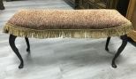 Vintage Iron Upholstered Bench, French style iron legs, upholstered top with fringe, good condition, 18"h., 36"long. Vintage Iron Upholstered Bench, French style iron legs, upholstered top with fringe, good condition, 18"h., 36"long.