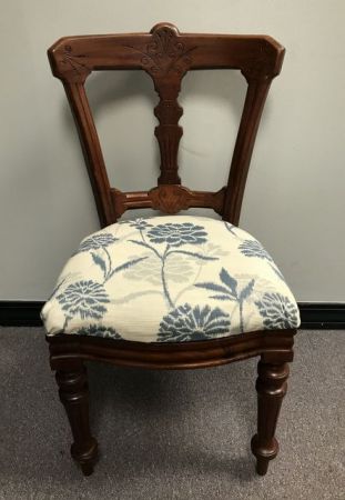 Modern Victorian Style Side Chair, carved trim work, floral cushion, 34"h. Modern Victorian Style Side Chair, carved trim work, floral cushion, 34"h.