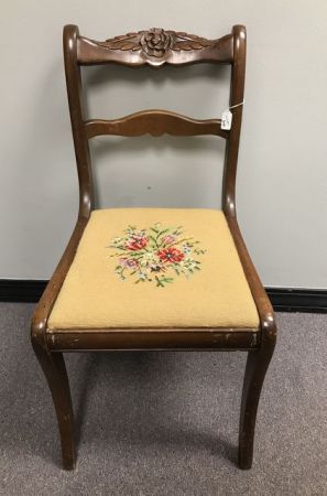 Rose Carved Mahogany Side Chair, needle work floral pattern cushion, 33"h. Rose Carved Mahogany Side Chair, needle work floral pattern cushion, 33"h.