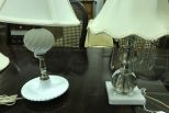 Milk Glass and Glass Prism Lamps, Swirl pattern milk glass lamp, glass water fall prisms marble base lamp 16"h. Milk Glass and Glass Prism Lamps, Swirl pattern milk glass lamp, glass water fall prisms marble base lamp 16"h.