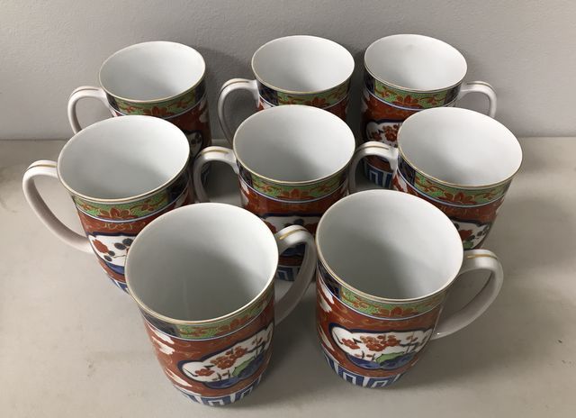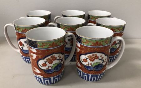 Modern Imari mugs, 8 total, marked on bottom, 4"h. Modern Imari mugs, 8 total, marked on bottom, 4"h.
