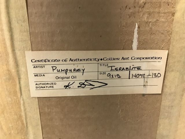 "Israelite" Oil Painting by Pumphrey, 9 x 15, framed, certificate of Authenticity, on board, 19"h., 13"w. "Israelite" Oil Painting by Pumphrey, 9 x 15, framed, certificate of Authenticity, on board, 19"h., 13"w.