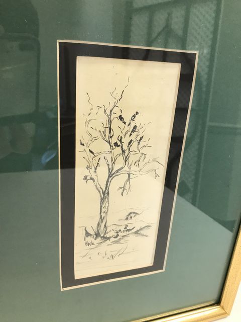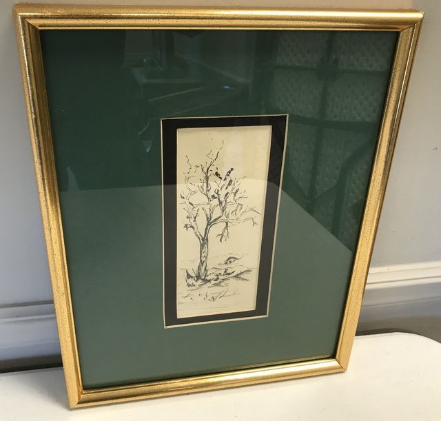 Framed Pencil of tree, matted, gold gilt framed, 15"h., 12"w. Framed Pencil of tree, matted, gold gilt framed, 15"h., 12"w.