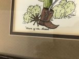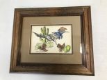 "Clown of the Dessert" Pen and Watercolor Road Runner by Barbara Negley, matted, framed, 11"h., 13"w. "Clown of the Dessert" Pen and Watercolor Road Runner by Barbara Negley, matted, framed, 11"h., 13"w.