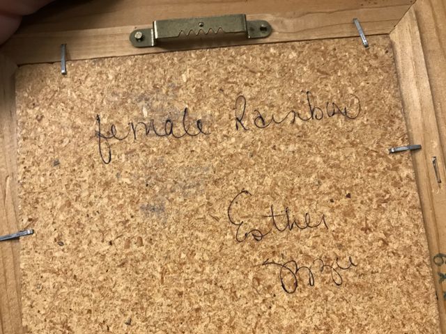 Southwest Sand Painting Framed "Female Rainbow", artist signed back, 12"h., 7"w. Southwest Sand Painting Framed "Female Rainbow", artist signed back, 12"h., 7"w.