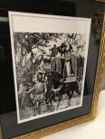 Framed Lithograph of Village Scene, matted, gold gilt framed, 26"h., 22"w. Framed Lithograph of Village Scene, matted, gold gilt framed, 26"h., 22"w.
