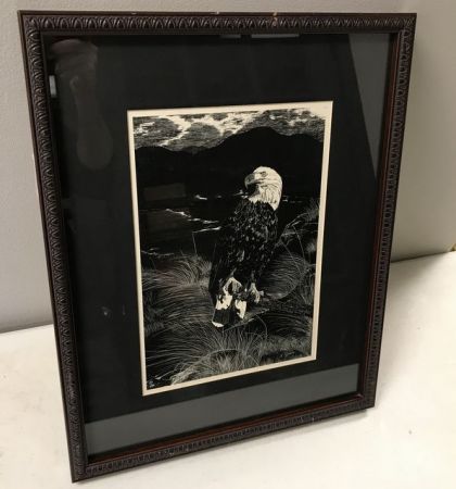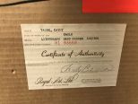 Lithograph "Eagle" hand signed, Kathy Yaude, numbered 183/500, Royal Art, Ltd. matted, framed, 20"h., 16"w. Lithograph "Eagle" hand signed, Kathy Yaude, numbered 183/500, Royal Art, Ltd. matted, framed, 20"h., 16"w.
