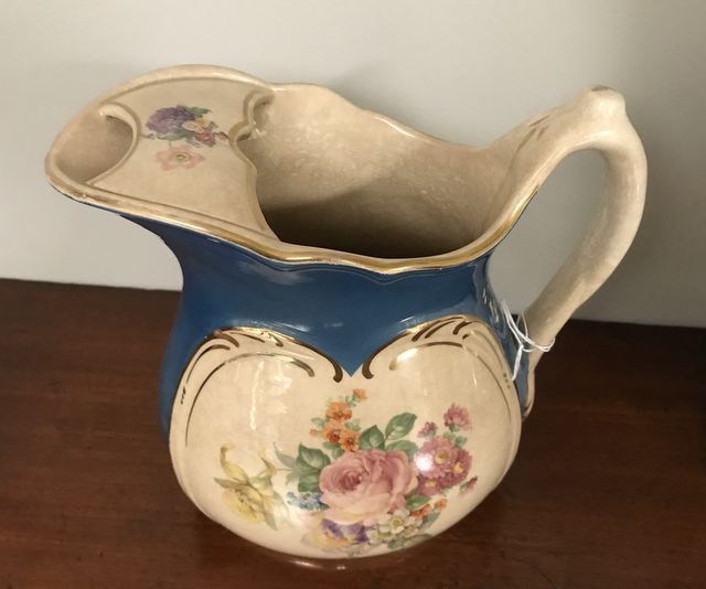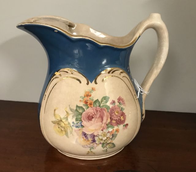 Hand Painted Porcelain Floral Pitcher, handled, vintage, unmarked, 10"h. Hand Painted Porcelain Floral Pitcher, handled, vintage, unmarked, 10"h.