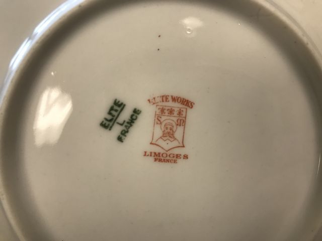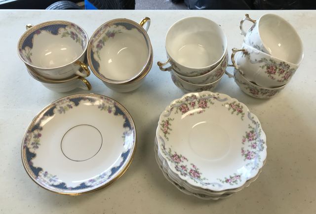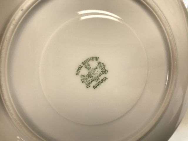 Royal Bayreuth and Little Works Limoges, cups and saucers. Royal Bayreuth and Little Works Limoges, cups and saucers.
