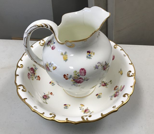 441 Cual Don England Hand Painted Porcelain Pitcher and Bowl