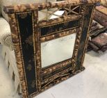 Vintage Oriental Bamboo wall mirror, silvered mirror, floral and bird decor, 32"h., 31"w. Vintage Oriental Bamboo wall mirror, silvered mirror, floral and bird decor, 32"h., 31"w.