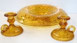 Includes bowl 11" dia. ; pair of candlesticks 3 1/2" h. Includes bowl 11" dia. ; pair of candlesticks 3 1/2" h.